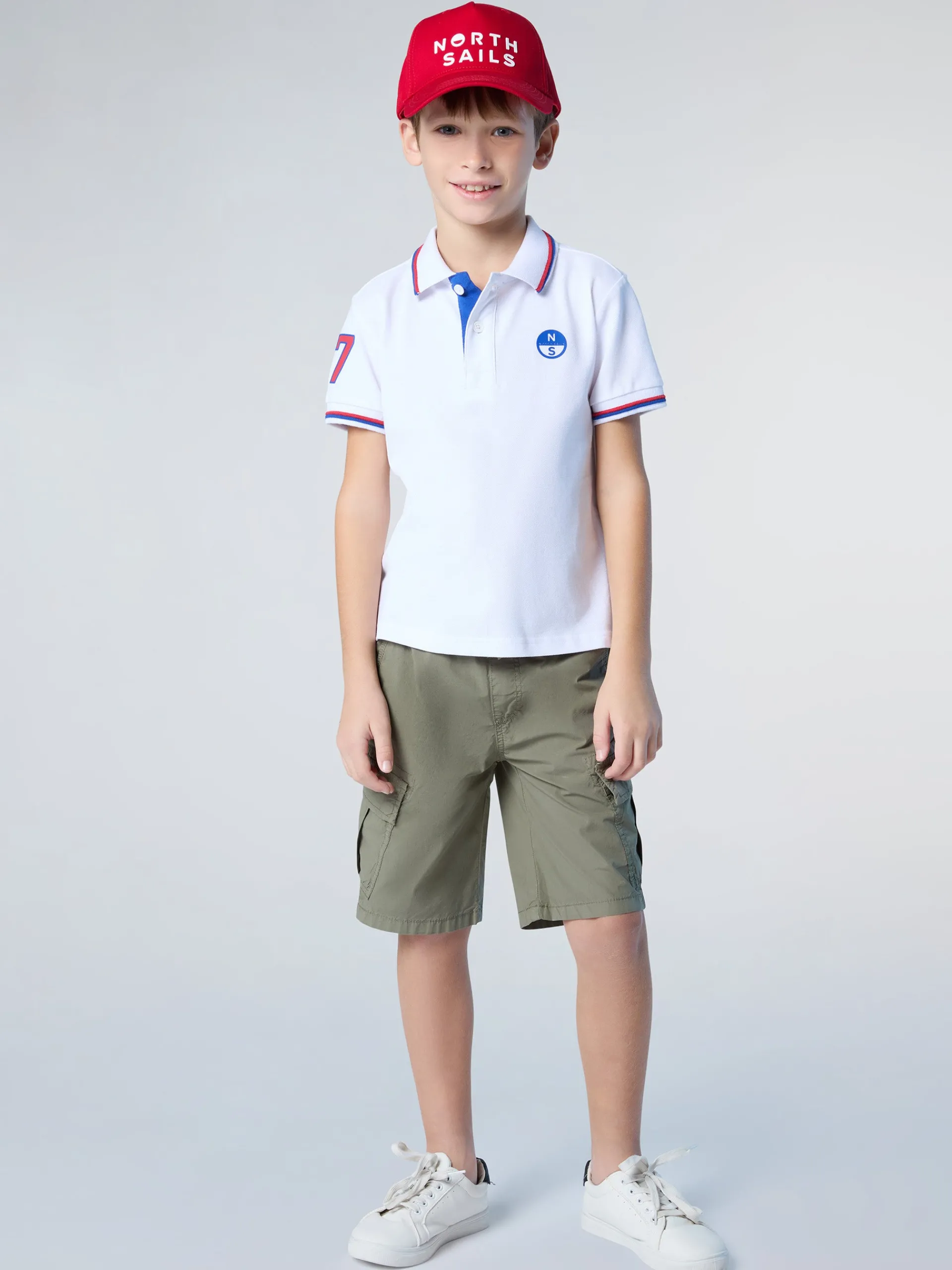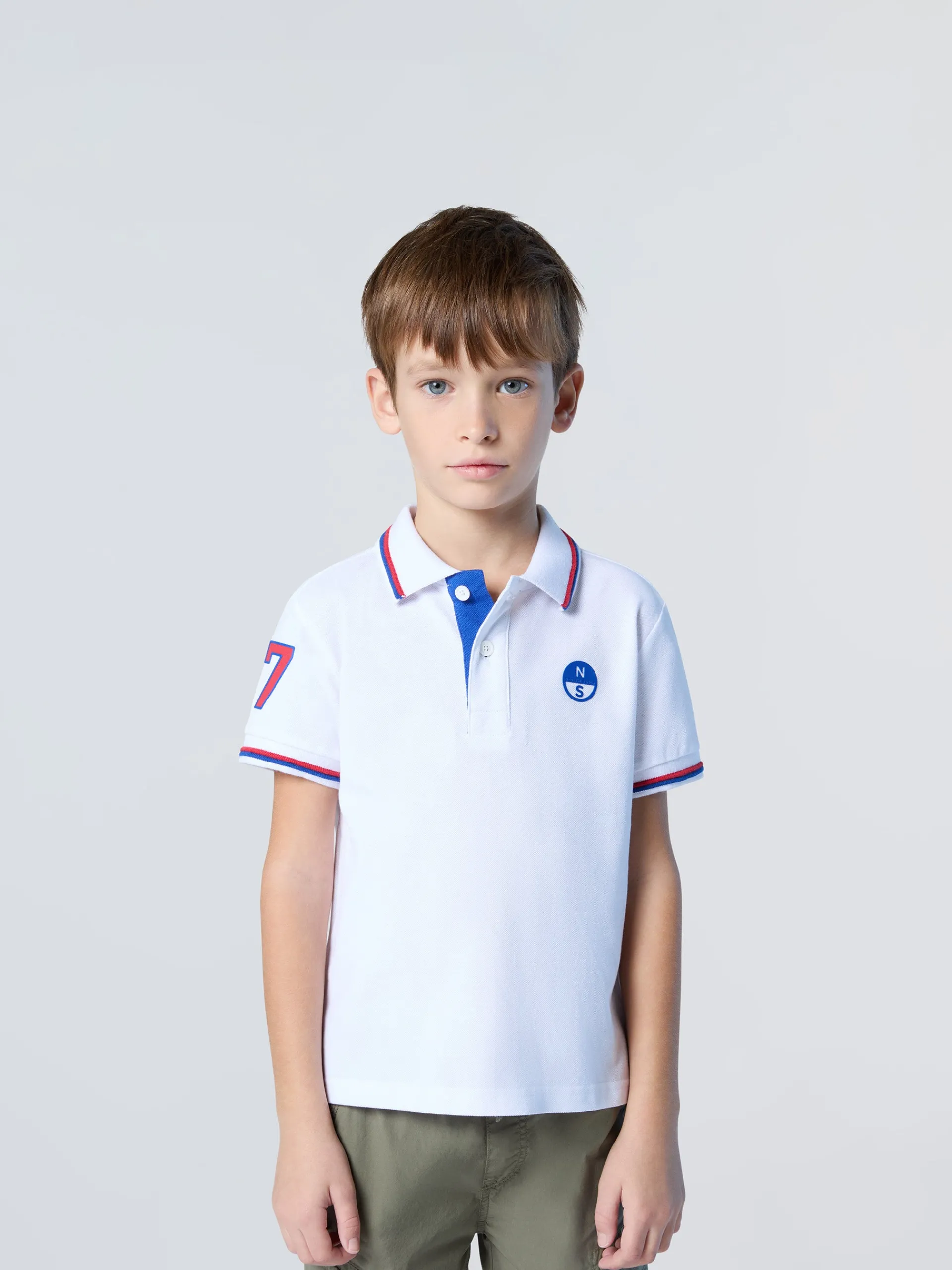 La polo da bambino che combina stile college e spirito North Sails. Il modello è realizzato in piquet di cotone organico che riduce le emissioni e il consumo di acqua rispetto alle fibre tradizionali. Si caratterizza per i bordi delle maniche dal colore a contrasto e il logo a rilievo sul petto. La patch sulla manica con il numero "57" è un omaggio all'anno di fondazione del brand.