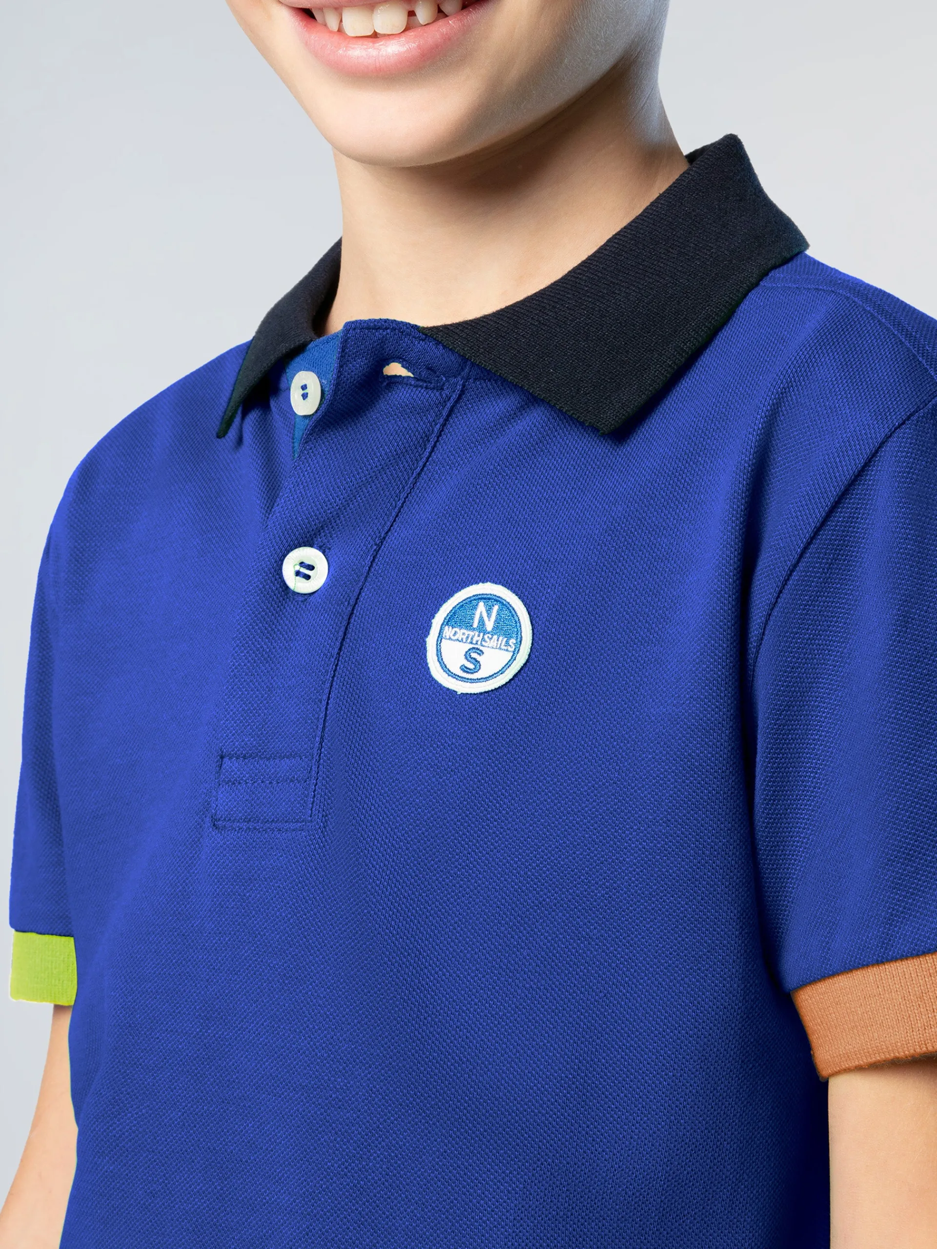 Questa polo mini me è un essenziale per l'estate che combina l'estetica North Sails e l'etica ispirata alla difesa del pianeta. Il modello è realizzato in piquet di cotone organico che riduce le emissioni e il consumo di acqua. Si caratterizza per i bordi delle maniche dal colore a contrasto e il dettaglio iconico del lettering stampato sotto il colletto.