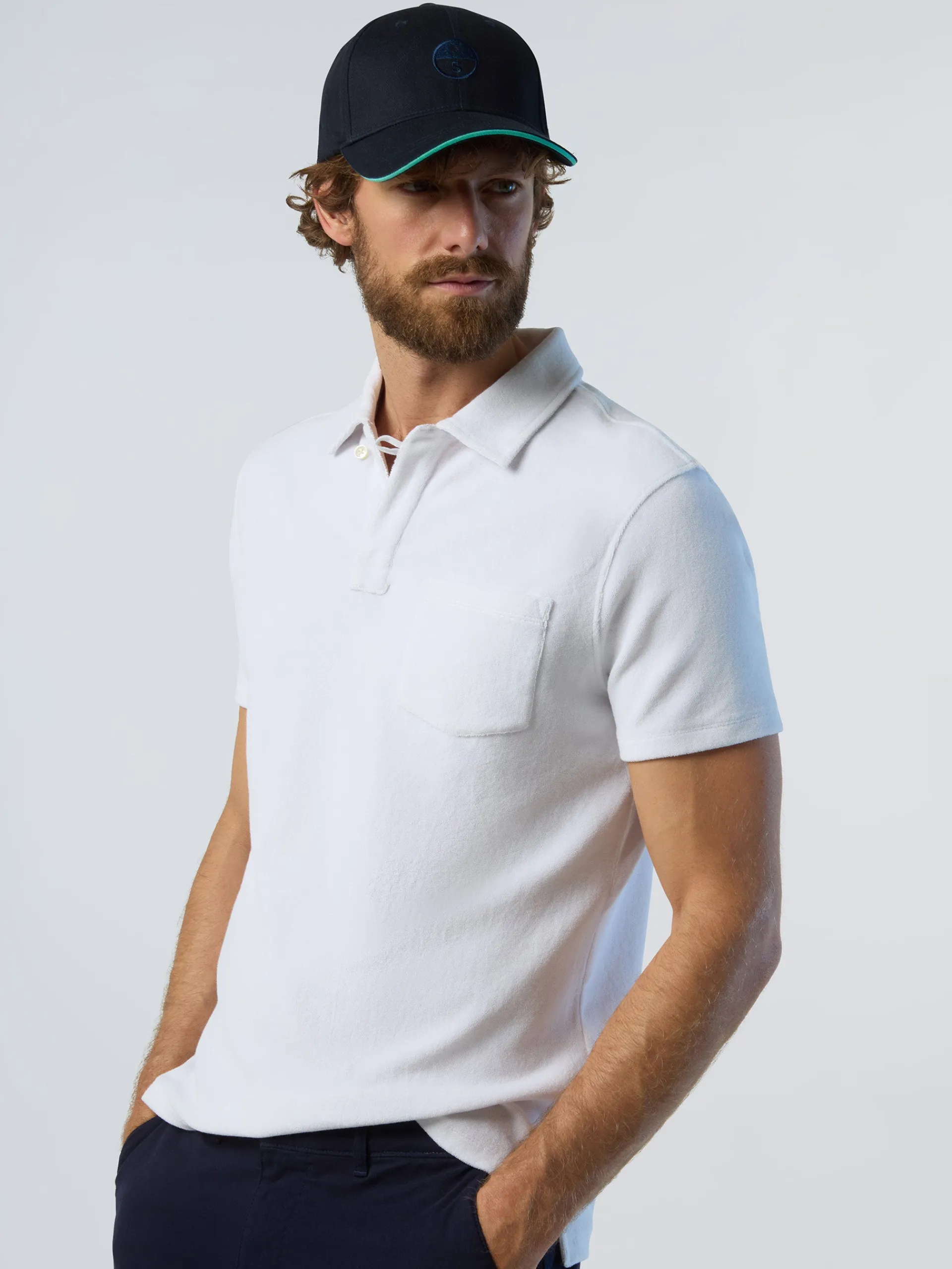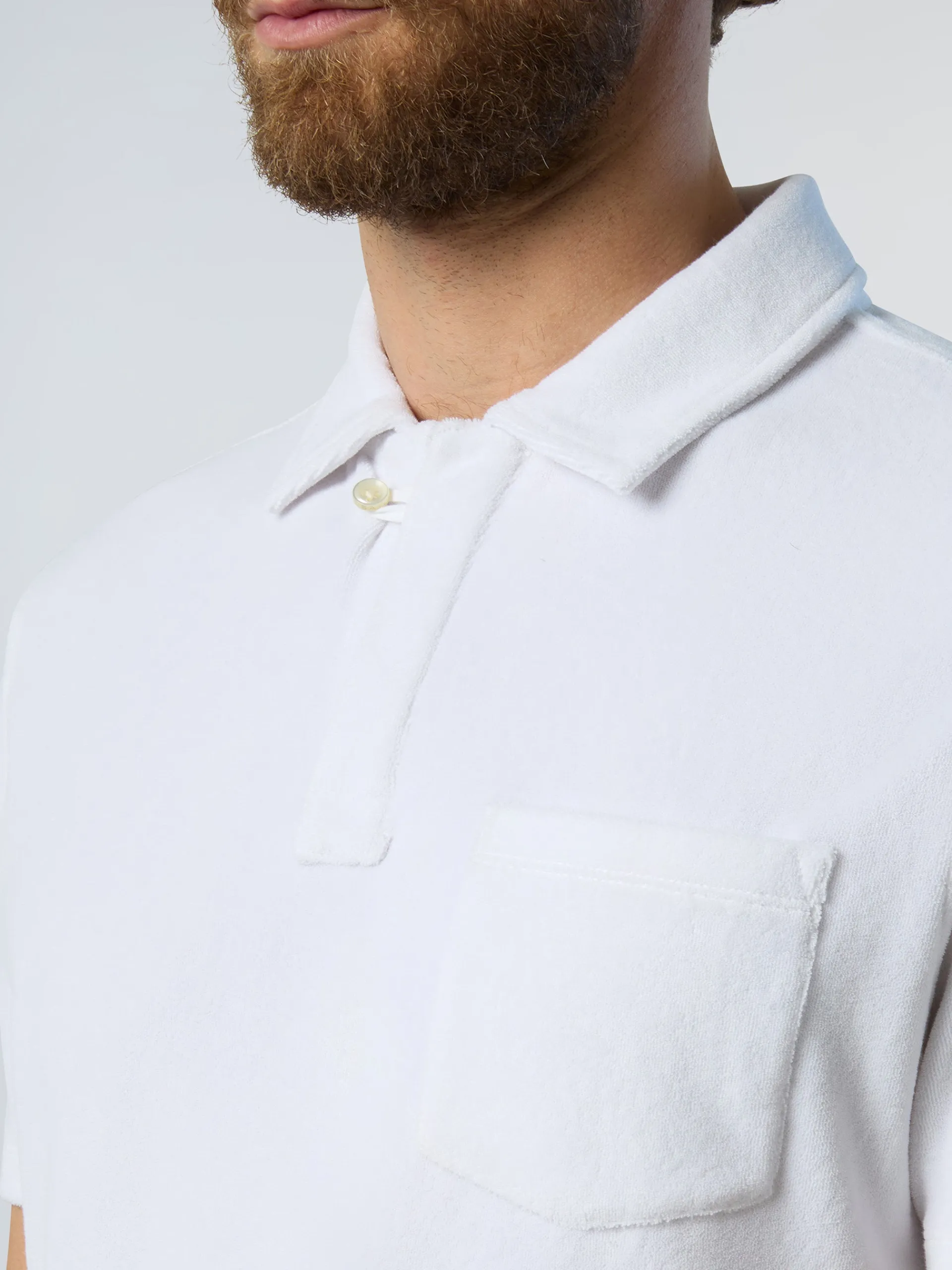 Da indossare in spiaggia o in piscina, questa polo da uomo è realizzata in morbida spugna che si asciuga facilmente ed è soffice sulla pelle. Il modello ha un design raffinato senza bottoni, con taschino sul petto e label logata al fondo.