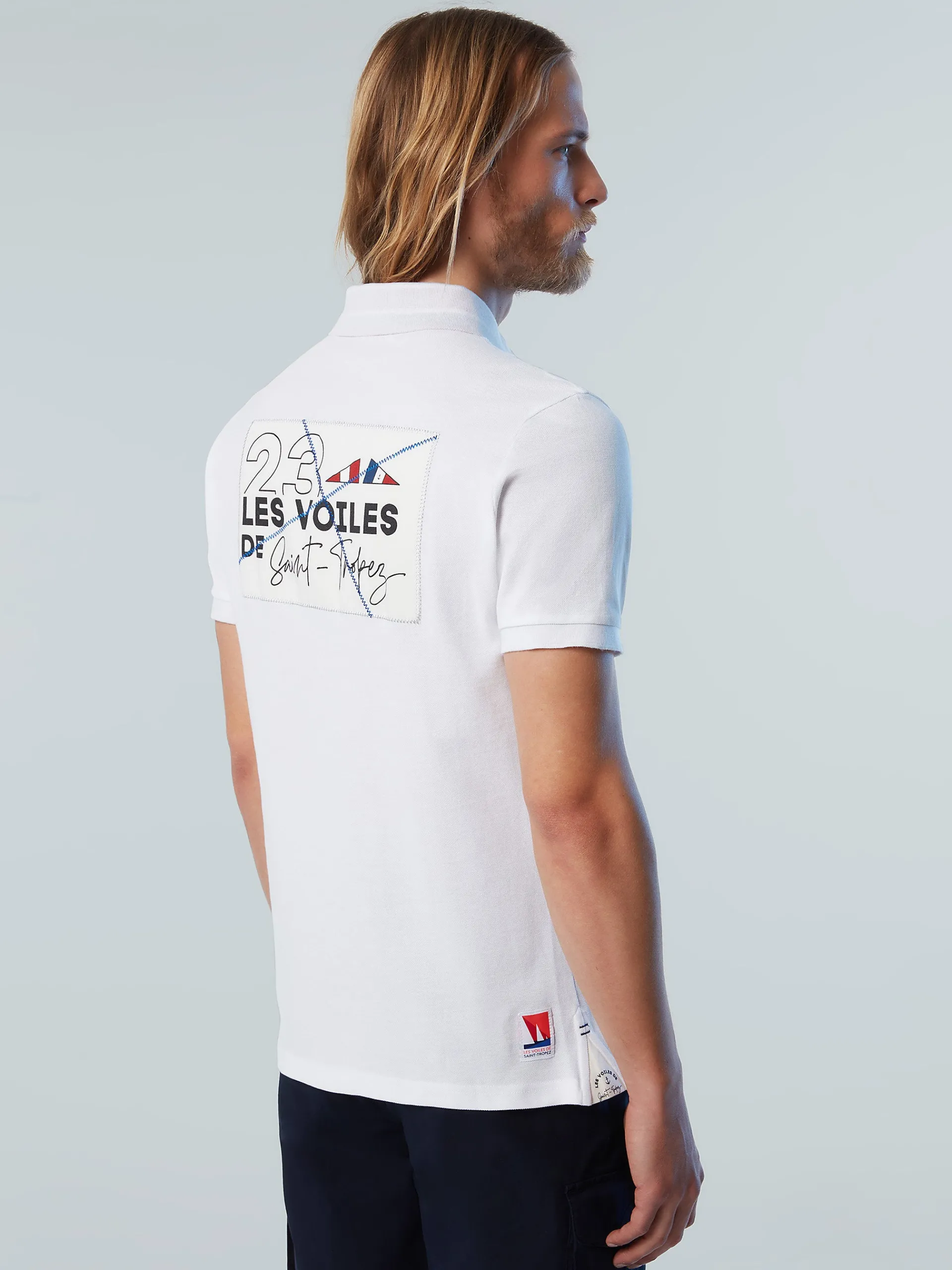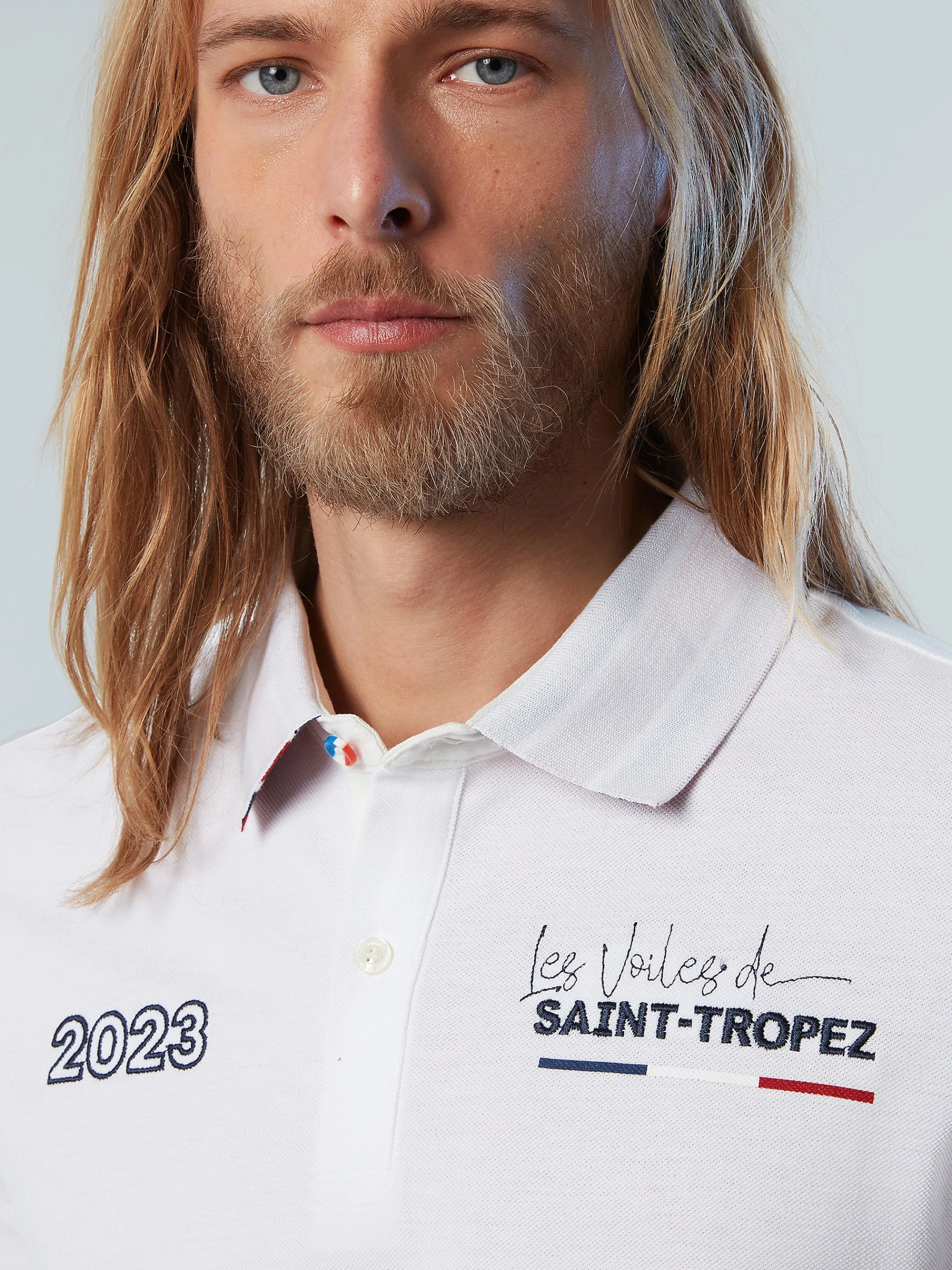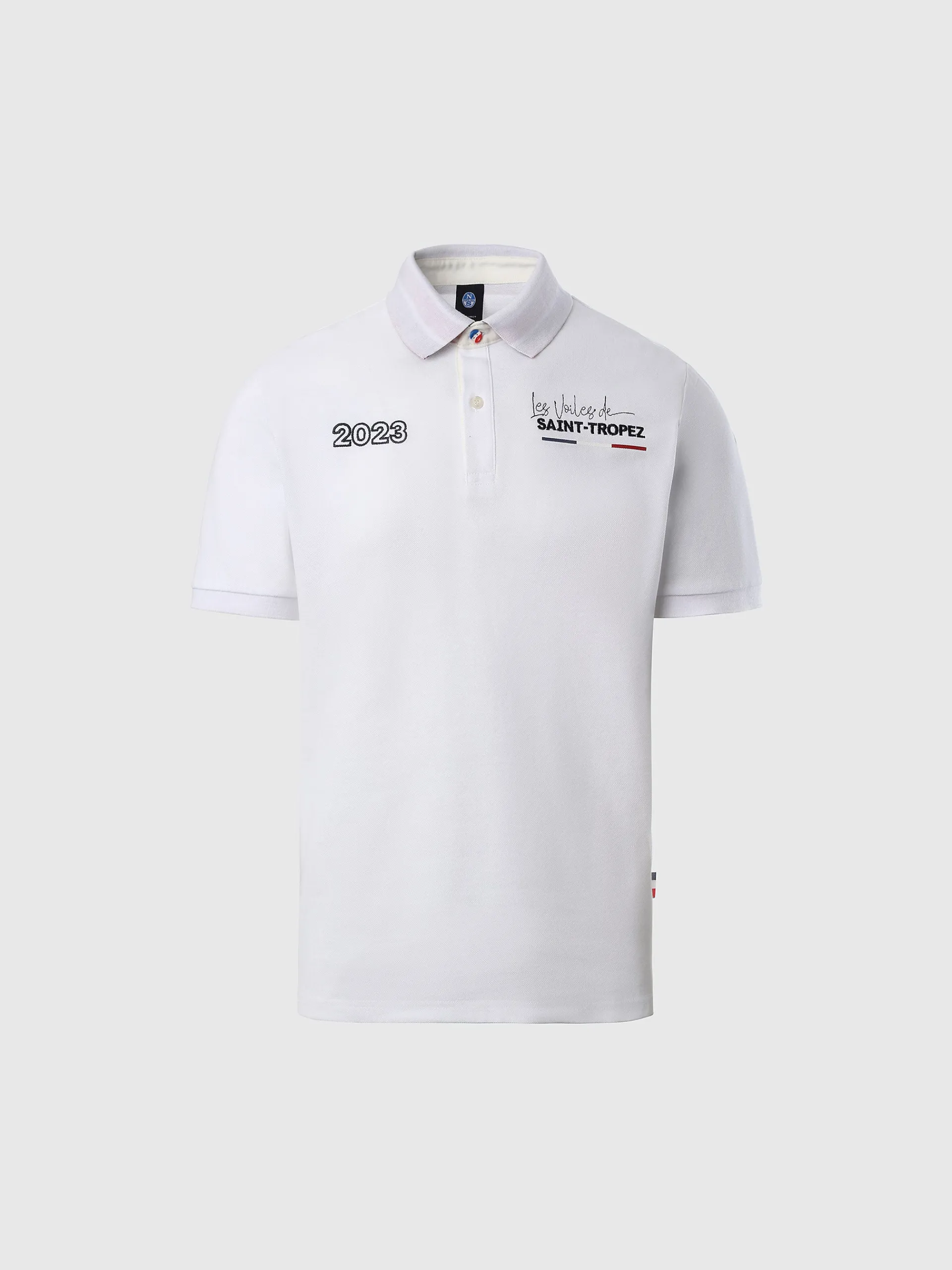 Il guardaroba per il tempo libero si aggiorna con questa polo in edizione limitata della capsule collection Les Voiles de Saint-Tropez. Il modello è realizzato in piquet di cotone organico a basso impatto ambientale ed è ricco di riferimenti grafici alla regata storica, come la maxi patch in gabardina sul retro e le coordinate di Saint-Tropez ricamate dietro il colletto. Viene consegnato con una pochette coordinata, impreziosita con la label ufficiale dell'evento.