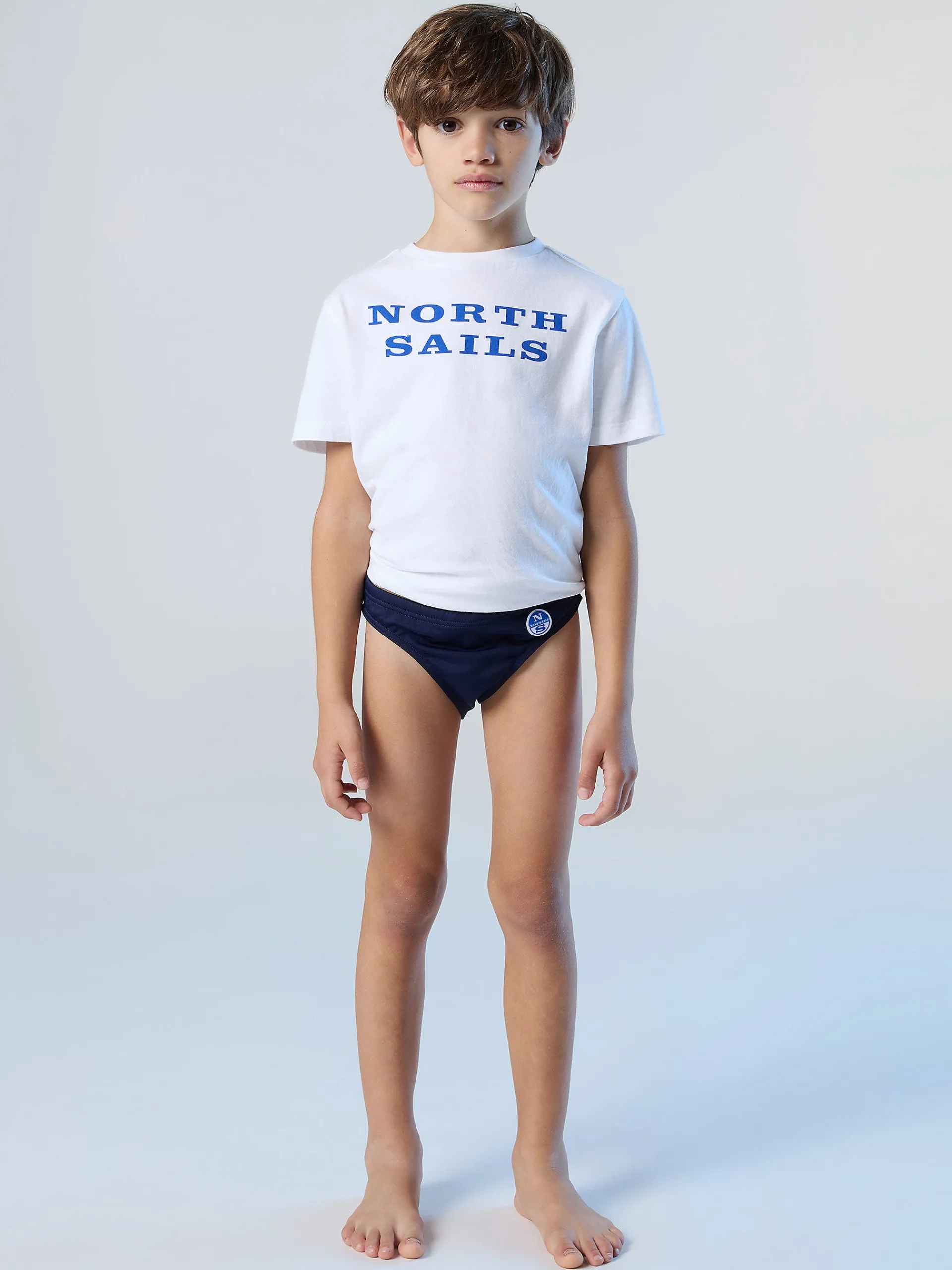 Questi slip mare hanno un design minimal, progettato per i piccoli amanti del nuoto. Il modello è realizzato in LYCRA® riciclata che offre il massimo comfort e riduce le emissioni. Impreziosito con la classica patch che dà al look un inconfondibile tocco North Sails.