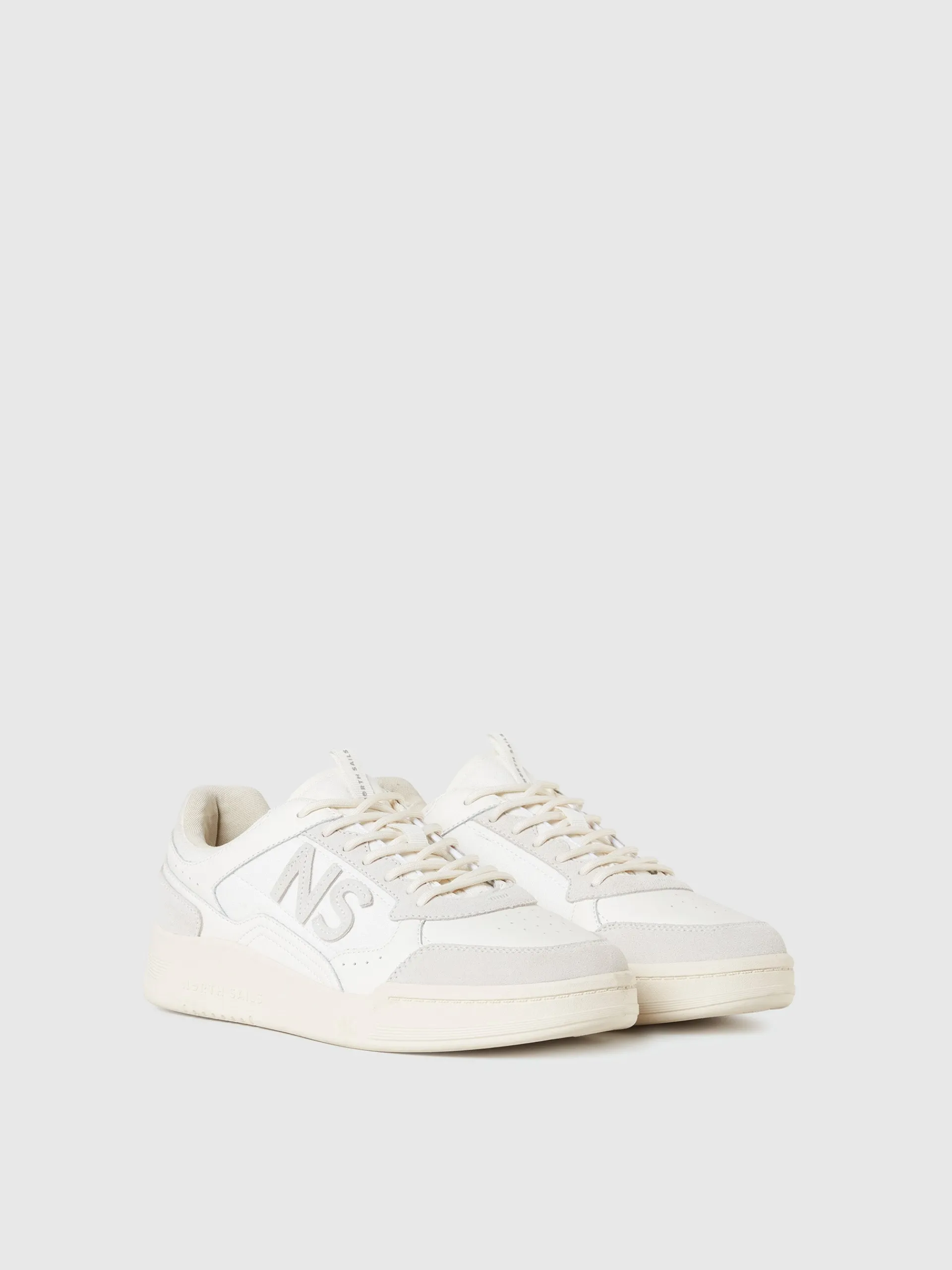 Jetty Border è la sneaker dal design senza tempo d'ispirazione tennis. Il modello è realizzato in tela leggera con rinforzi in microfibra effetto pelle e suede e si caratterizza per le patch NS cucite sui lati. Leggera e versatile con infiniti abbinamenti, è comoda da indossare grazie alla suola a cassetta alta e alla linguetta in nastro logato.