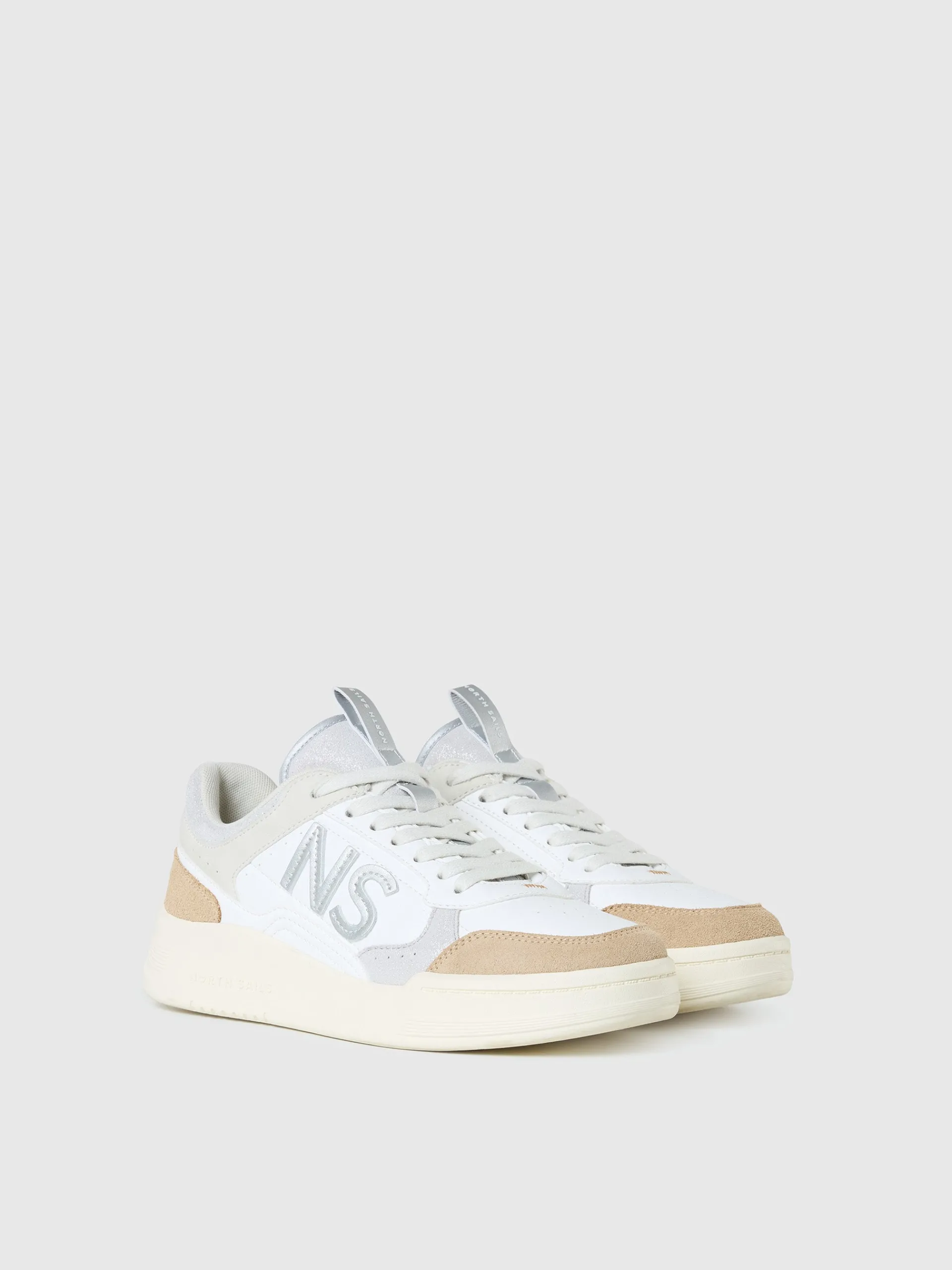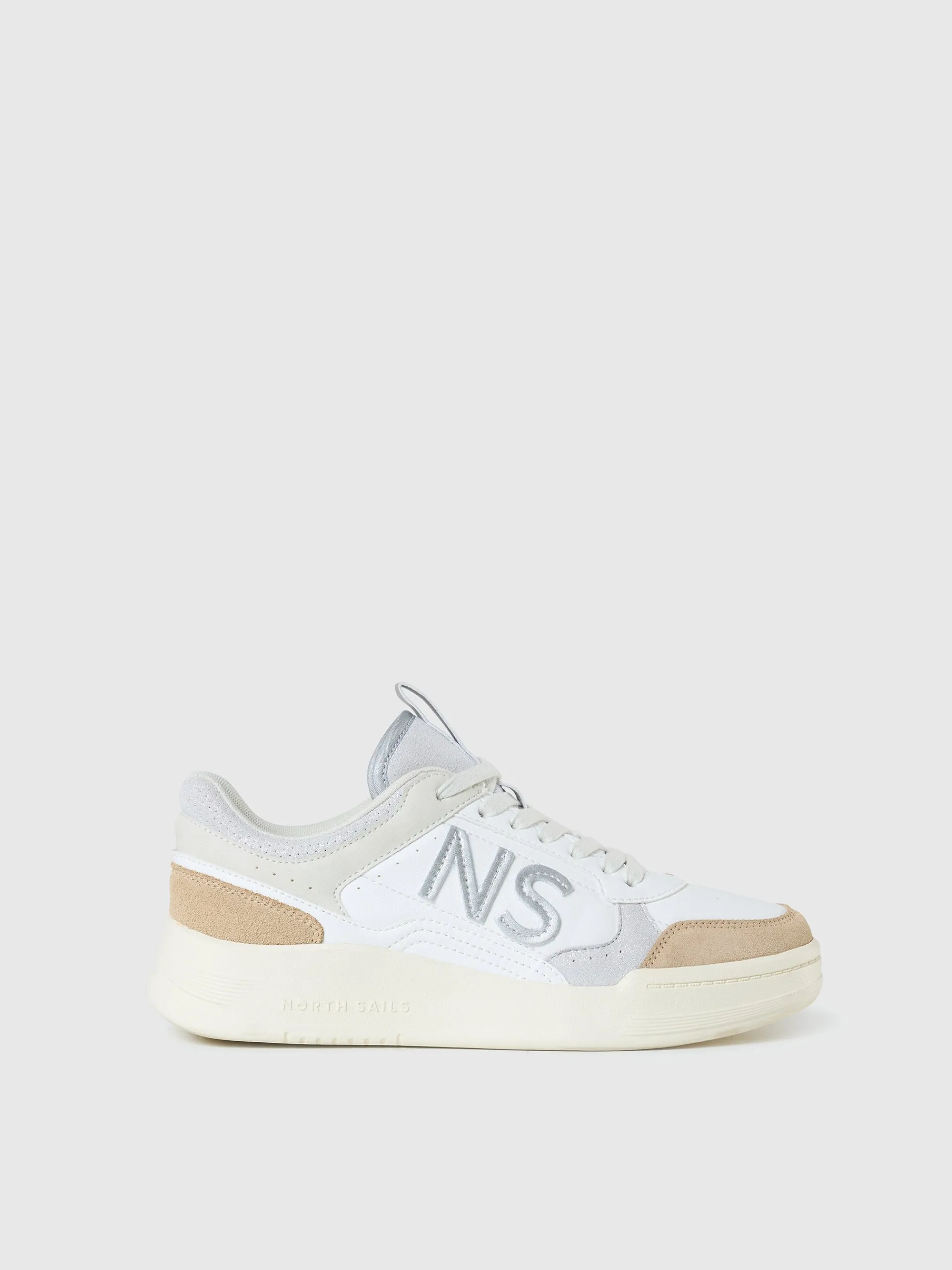 An ode to effortless off-duty dressing. These sneakers elevate a timeless tennis silhouette with a chic palette of airy hues and glittery overlays for a feminine take on a sports classic. Delicately stitched metallic NS patches embellish the side, illuminating every step with unmistakable North Sails allure.