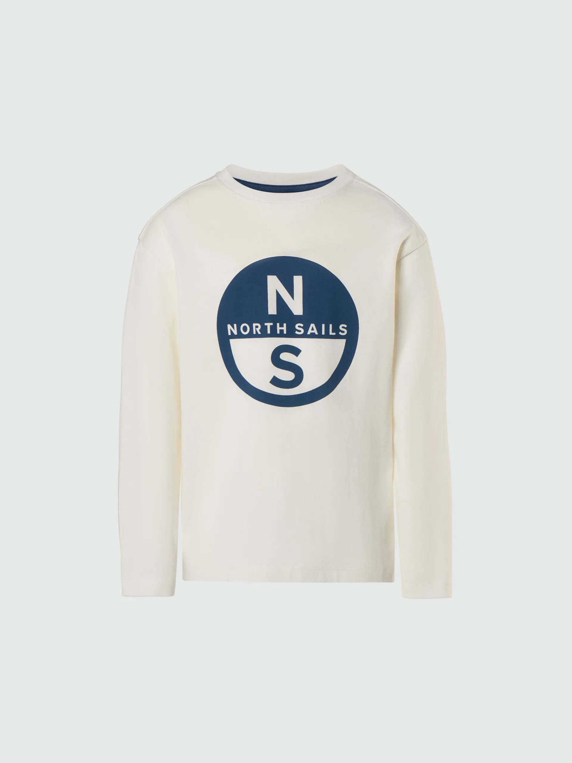 La t-shirt a maniche lunghe che esprime in ogni dettaglio lo spirito North Sails. Perfetto per la scuola e il tempo libero, il modello è realizzato in jersey di cotone organico che riduce il consumo di acqua e le emissioni rispetto alle fibre tradizionali. Si caratterizza per il maxi logo stampato sul davanti per una decisa dichiarazione di stile.