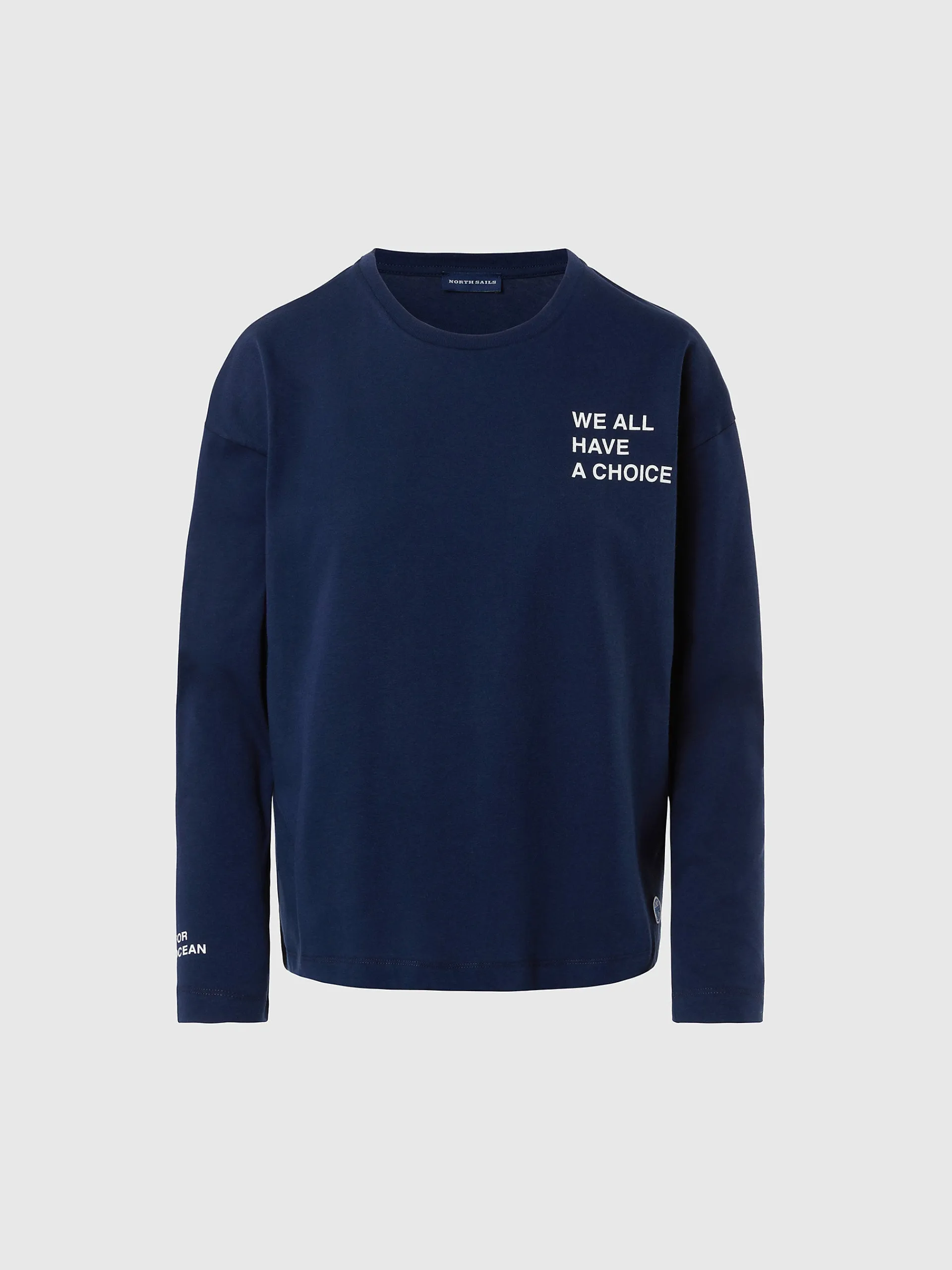 Abbina questa t-shirt boxy ai tuoi jeans preferiti per aggiornare lo stile dei tuoi look casual. Il modello combina comfort e attenzione al pianeta, è realizzato in jersey di cotone organico ed è rifinito con stampe che celebrano la nostra passione per la protezione degli oceani. La patch North Sails completa il design con un tocco distintivo.