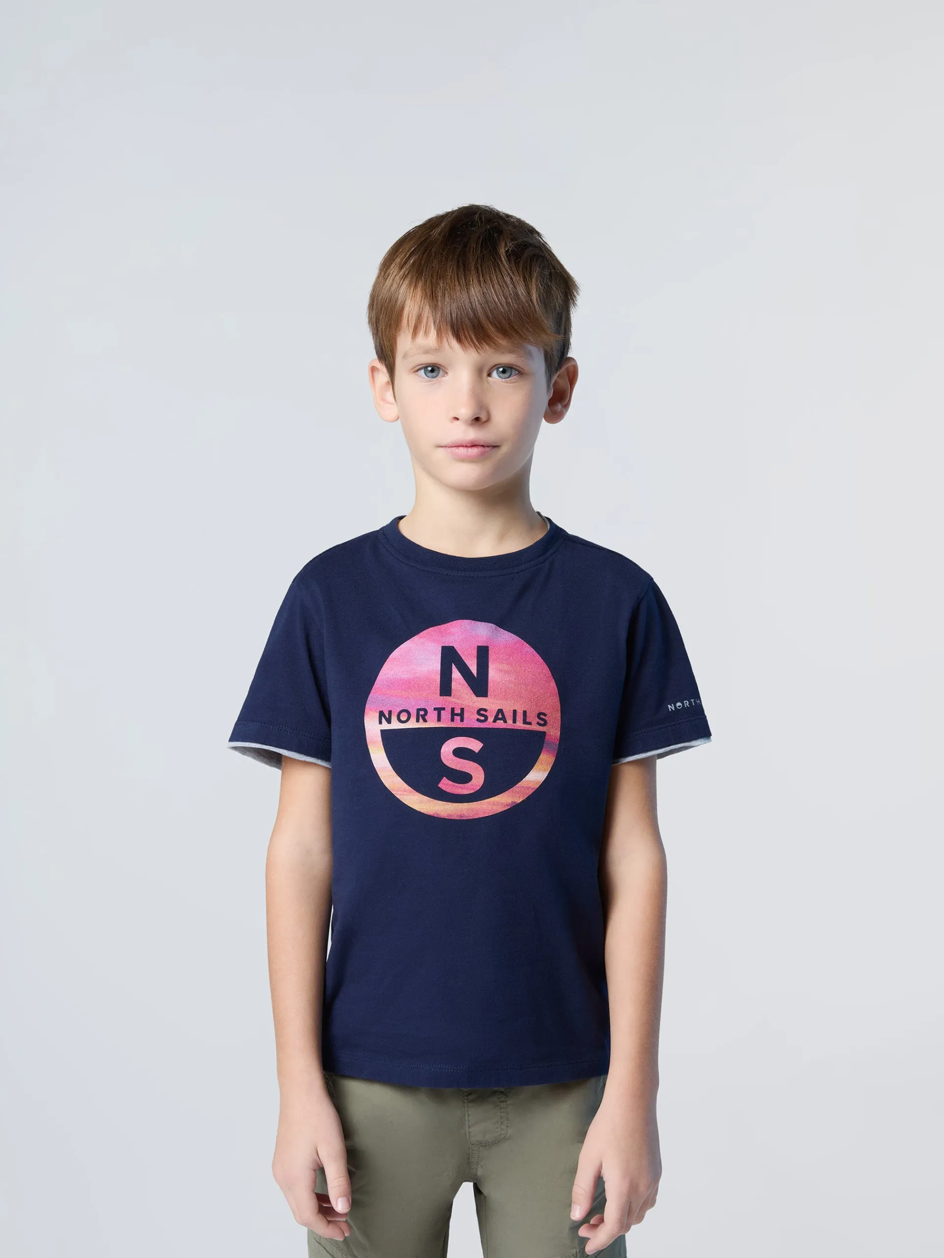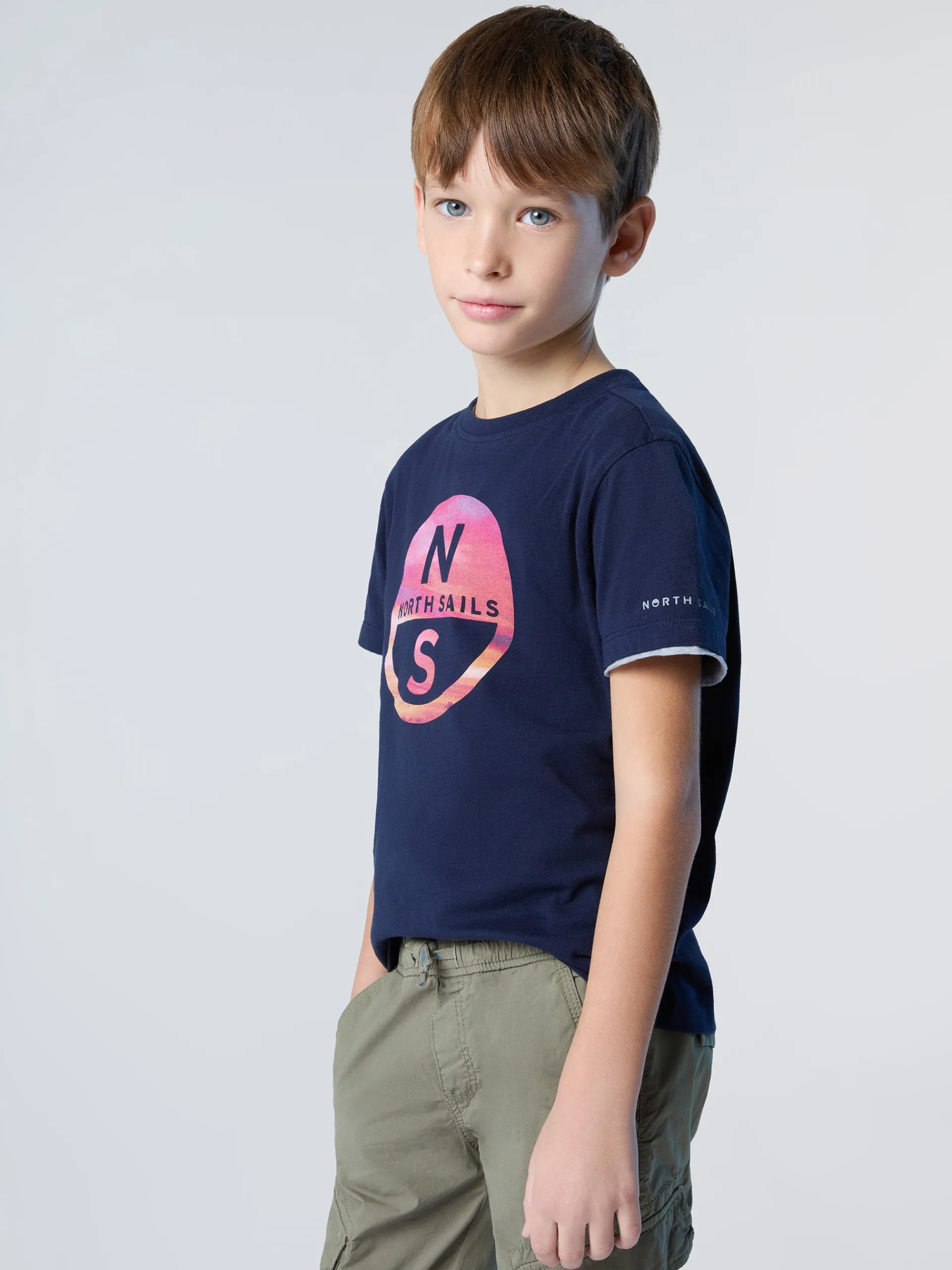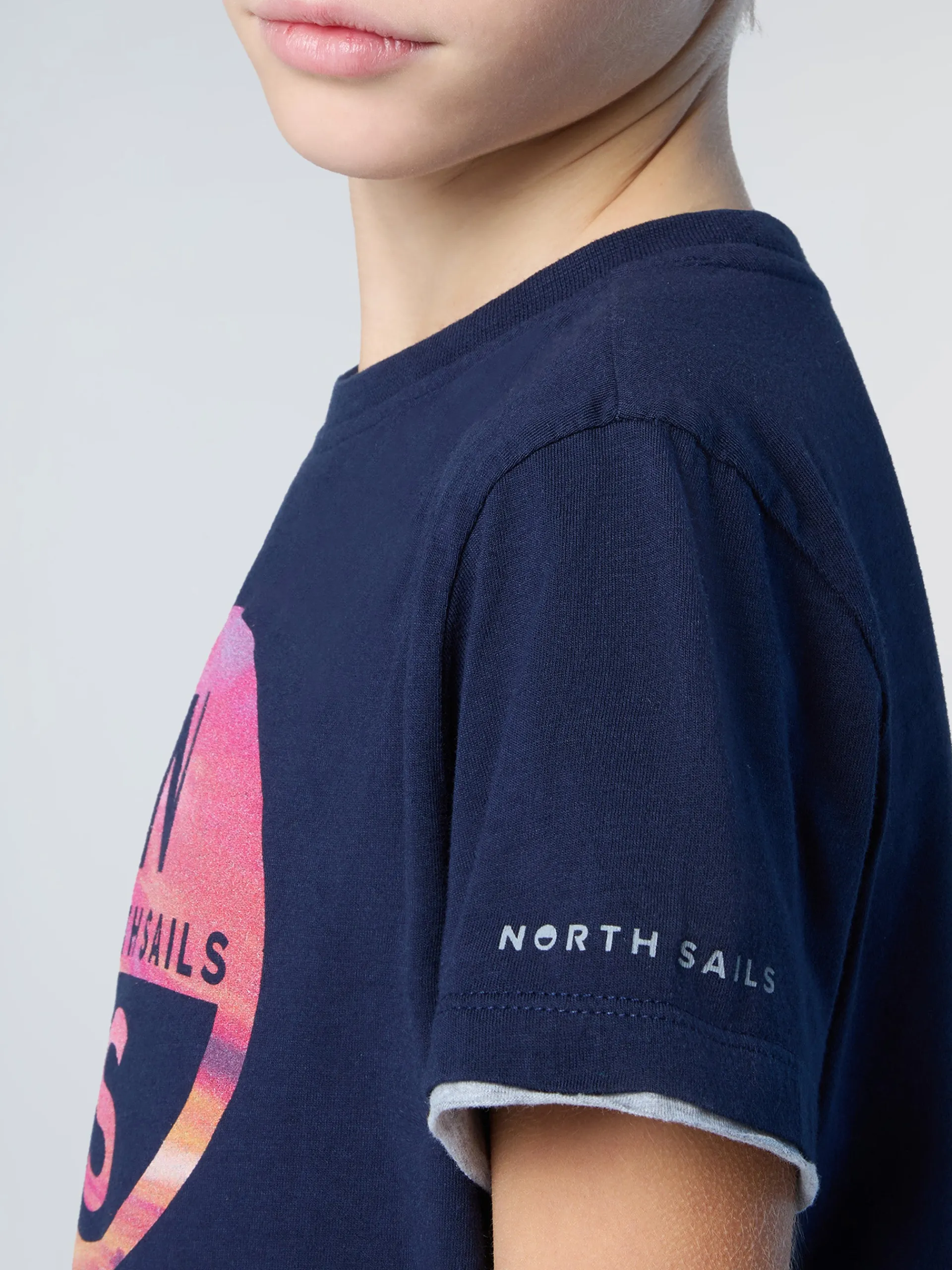Questa t-shirt girocollo da bambino esprime in ogni dettaglio il DNA North Sails. Il modello ha un design rilassato con bordi a taglio vivo ed è realizzato in jersey di cotone organico che contribuisce a ridurre il consumo di acqua e le emissioni nocive. Il maxi logo sul petto dall'effetto fotografico celebra la nostra passione per le avventure outdoor.