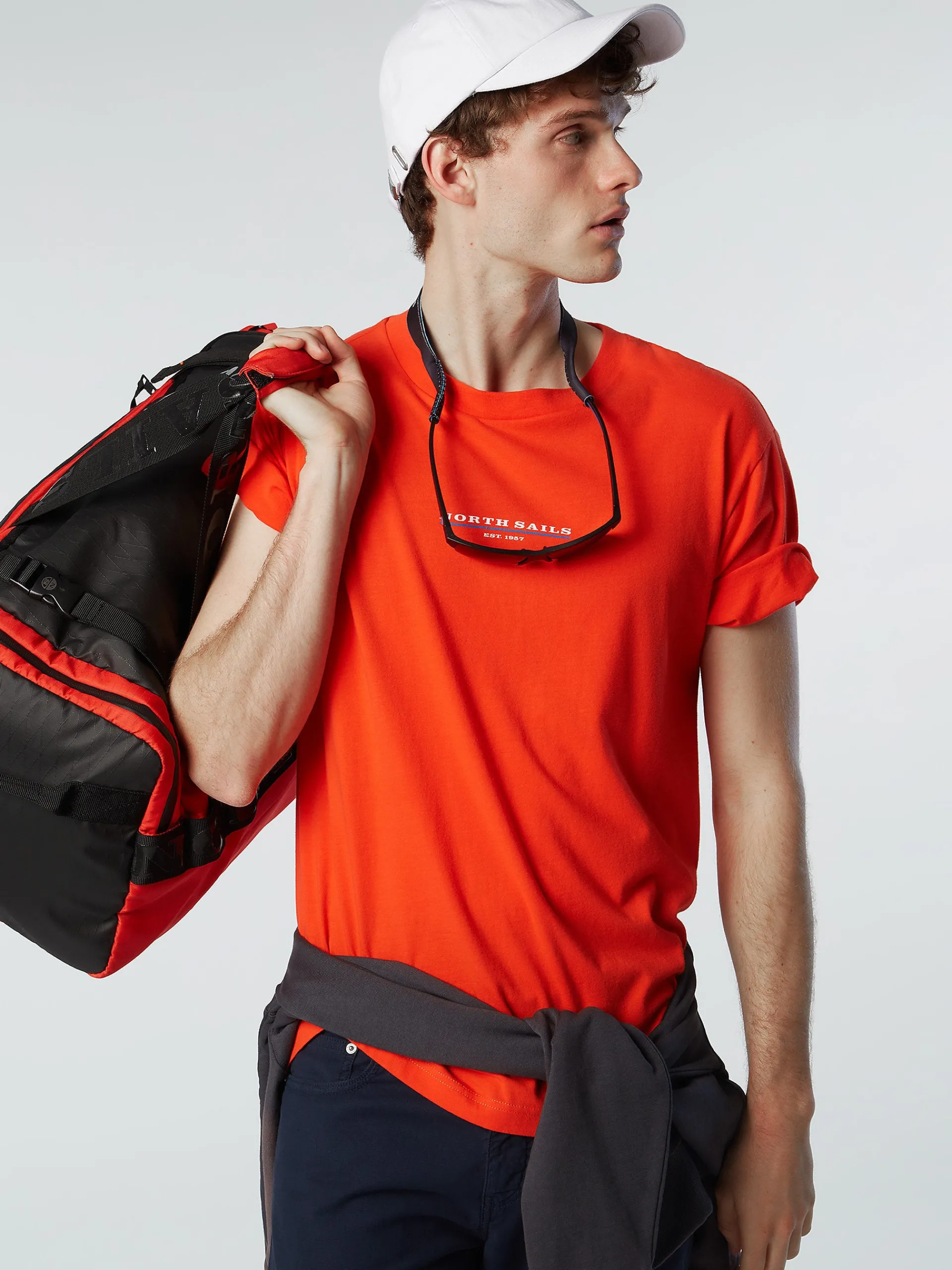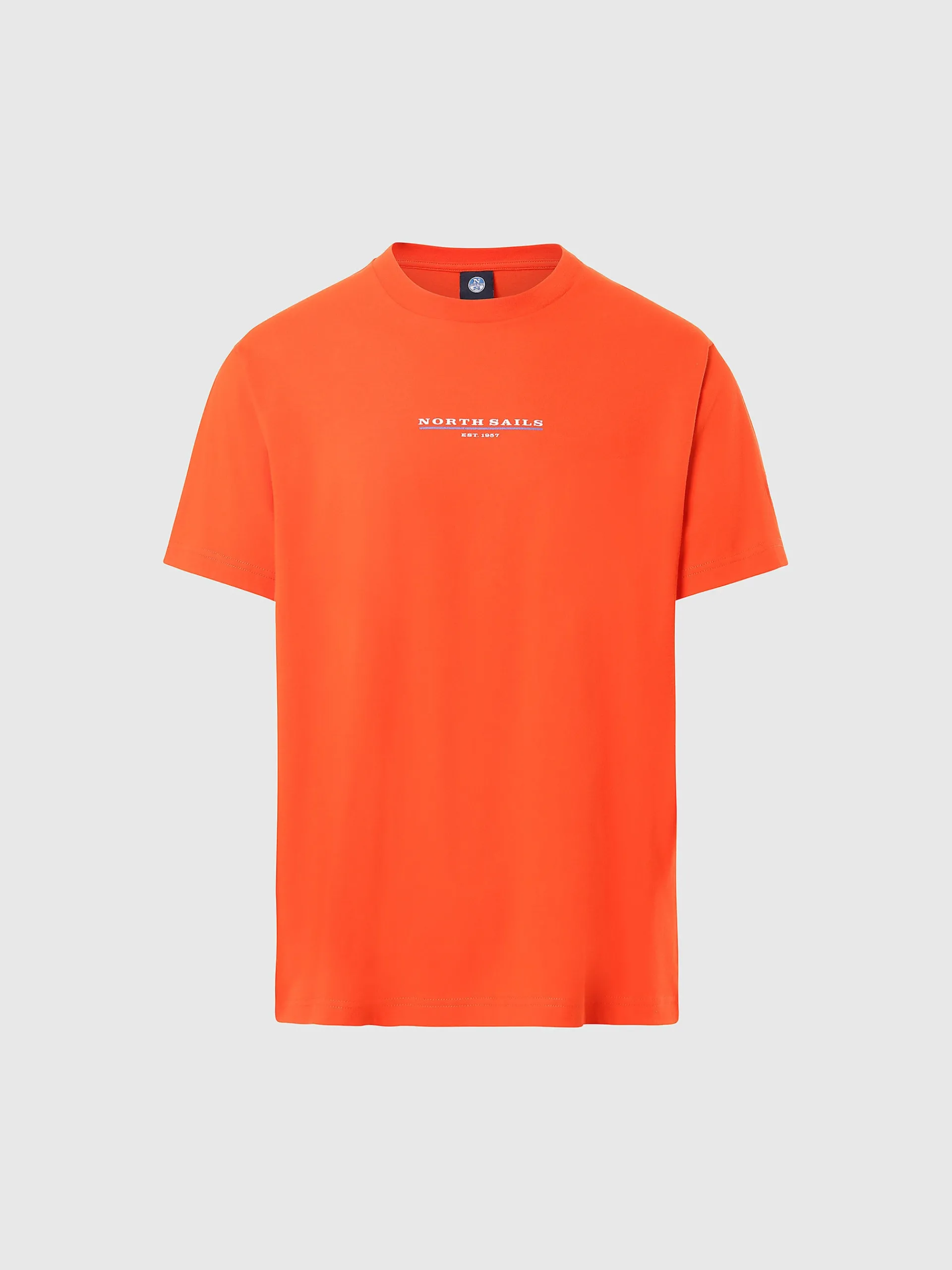 La classica t-shirt North Sails che aggiorna il guardaroba leisure dell'estate. Il modello da uomo è realizzato in jersey di cotone organico che esprime un atteggiamento positivo verso il futuro del Pianeta. Il logo in feltro sulla manica è un dettaglio iconico, mentre la stampa lettering sul davanti rende omaggio all'anno di nascita del brand.