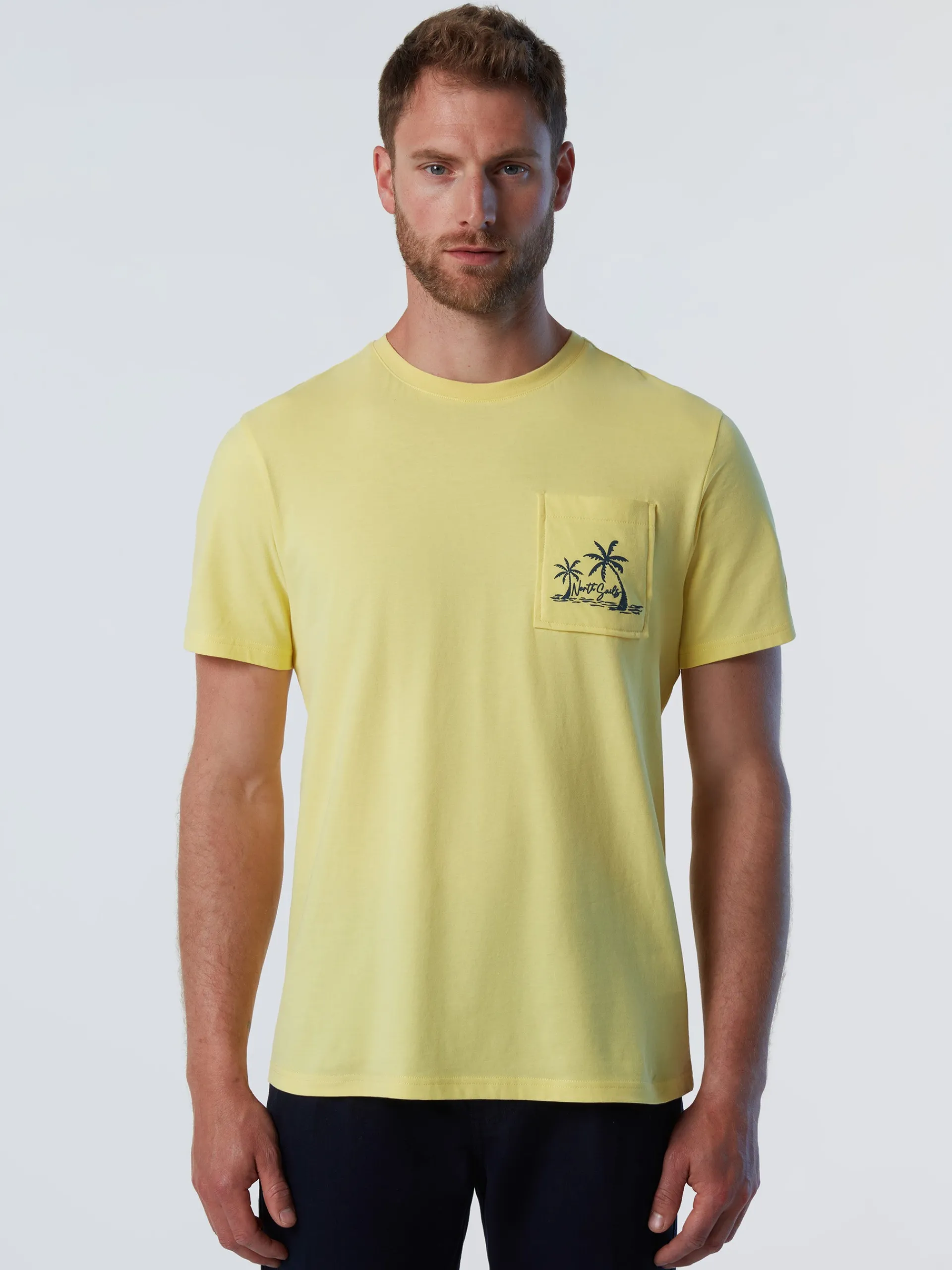 La t-shirt fresca e rilassata come le atmosfere dell'estate. Il modello da uomo è realizzato in jersey di cotone organico che rispetta il pianeta ed è rifinito con un finish effetto pesca per una sensazione super morbida sulla pelle. Il taschino sul petto è decorato con il lettering North Sails e un divertente motivo palme.