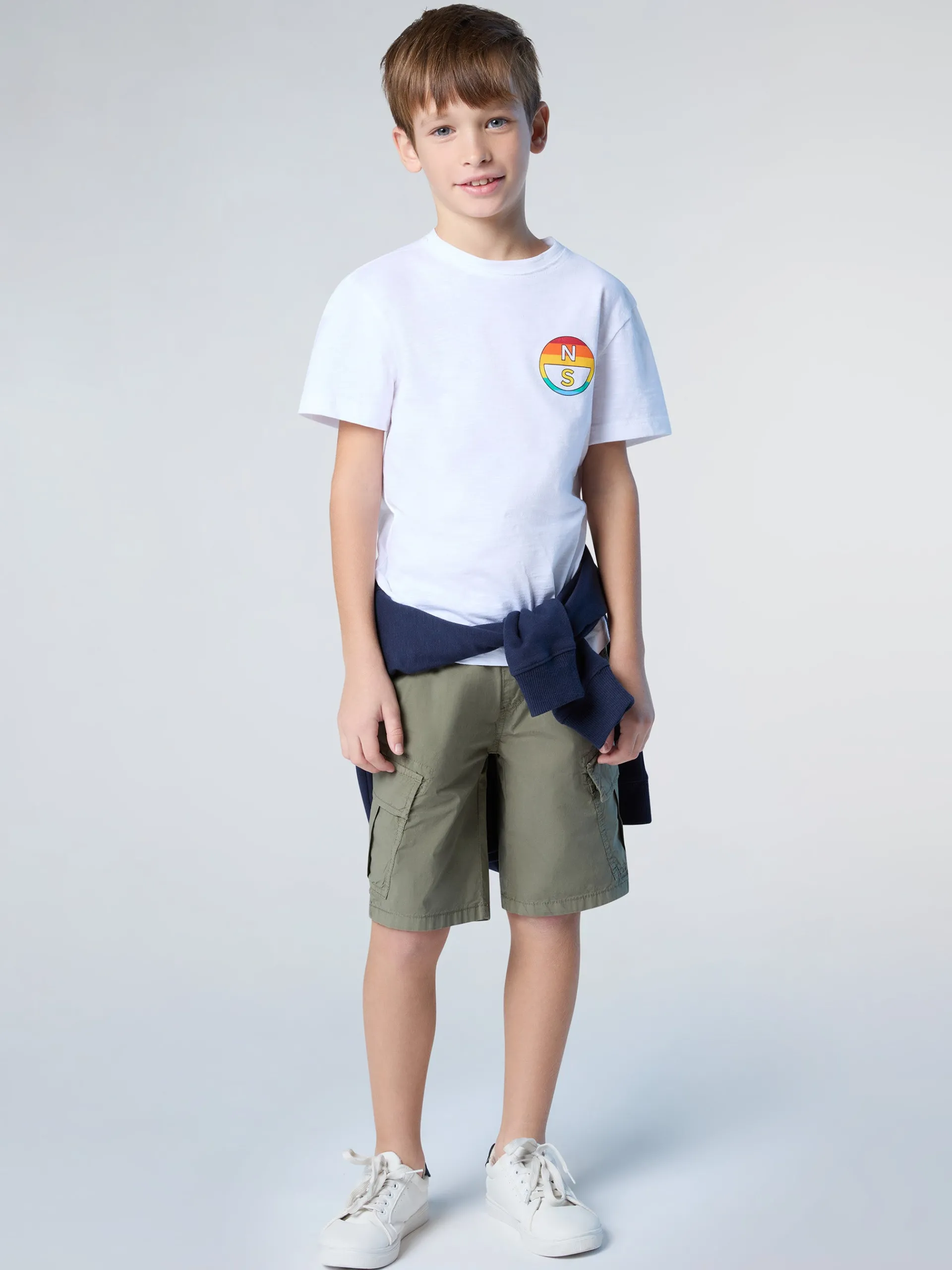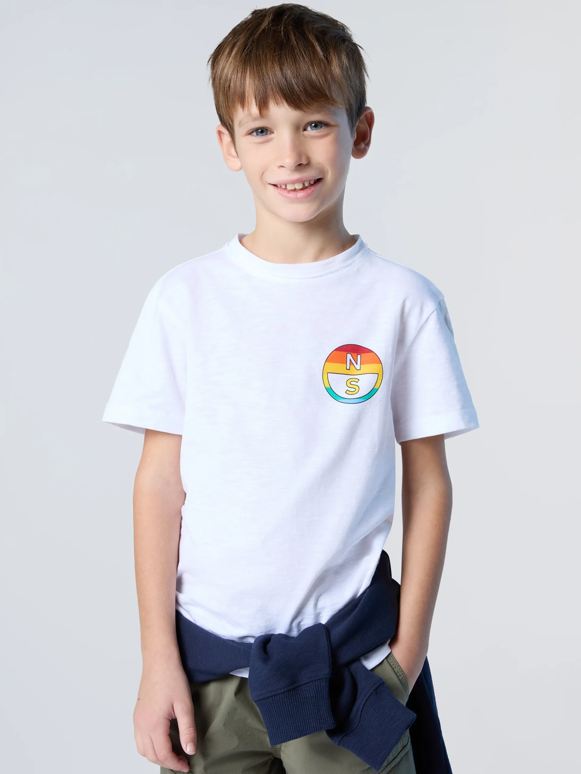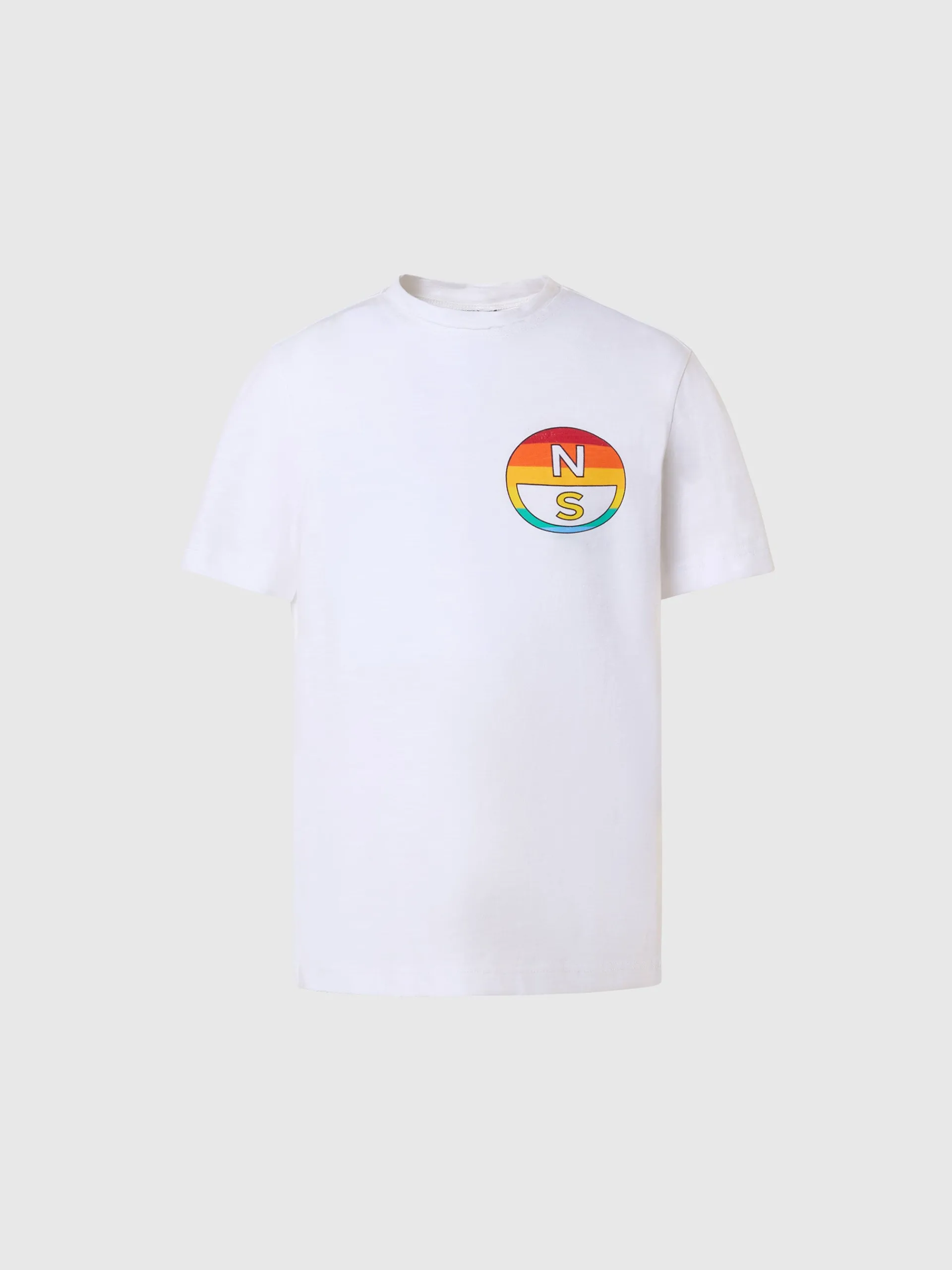 Questa t-shirt è l'essenziale del guardaroba kids che esprime il DNA North Sails. Il modello ha un design rilassato con bordi a taglio vivo ed è realizzato in jersey di cotone organico fiammato che contribuisce a ridurre il consumo di acqua e le emissioni nocive. La stampa sul petto e sul retro nei colori dell'arcobaleno è la nota grafica vivace che aggiorna il look.