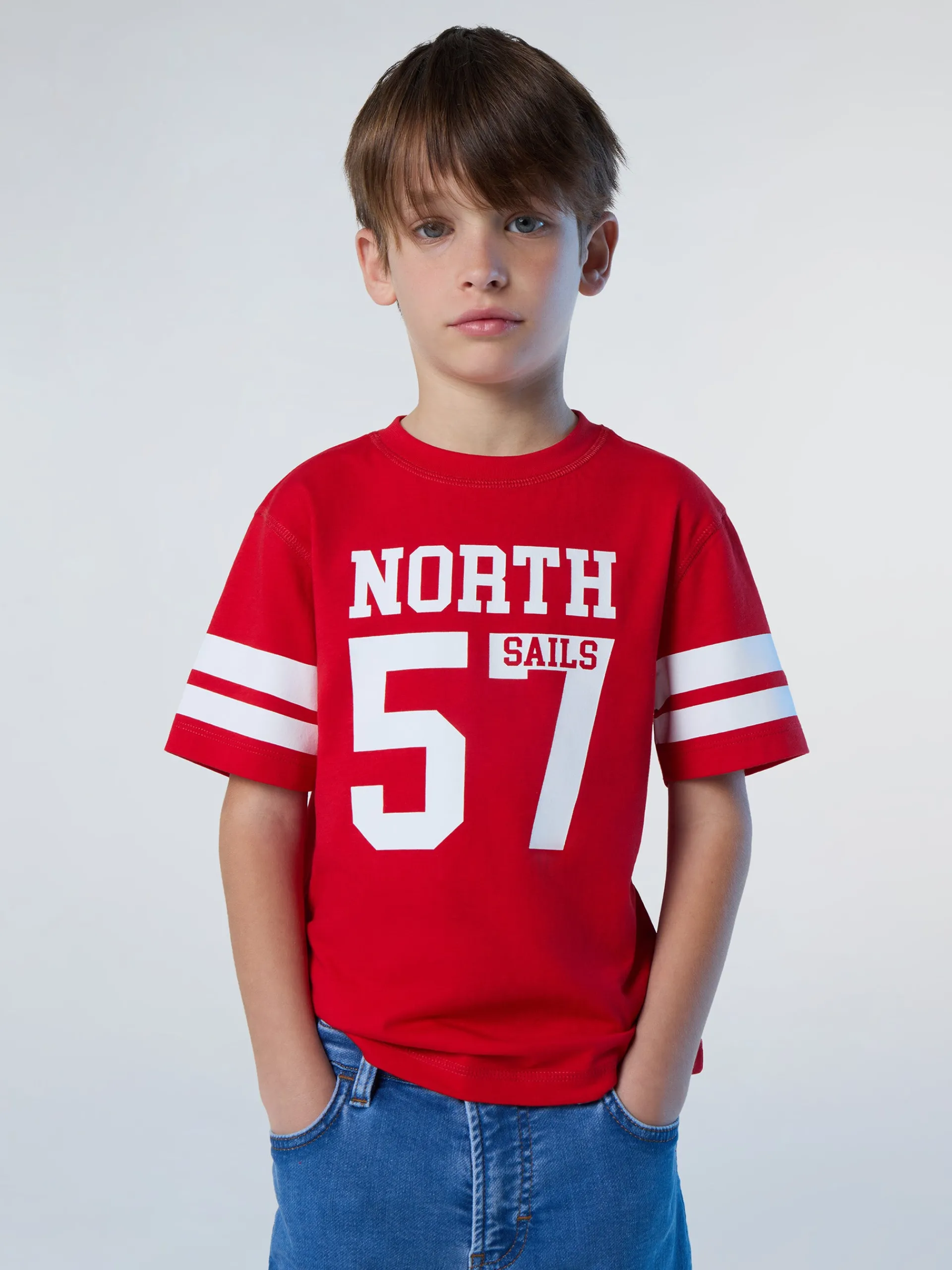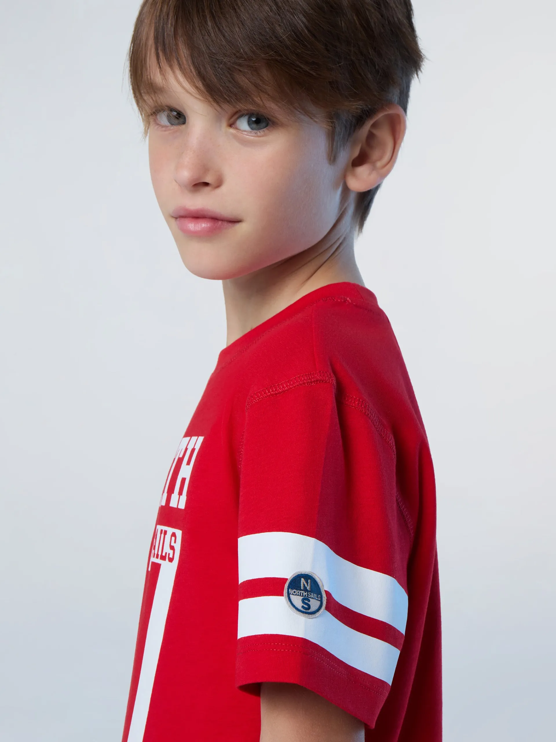 Questa t-shirt da bambino combina ispirazione college e spirito North Sails. Perfetto per la scuola e il tempo libero, il modello è realizzato in jersey di cotone organico che rispetta l'ambiente perchè limita le emissioni e il consumo di acqua rispetto alle fibre tradizionali. Si caratterizza per la stampa in stile varsity che omaggia il luogo e l'anno di fondazione del brand.