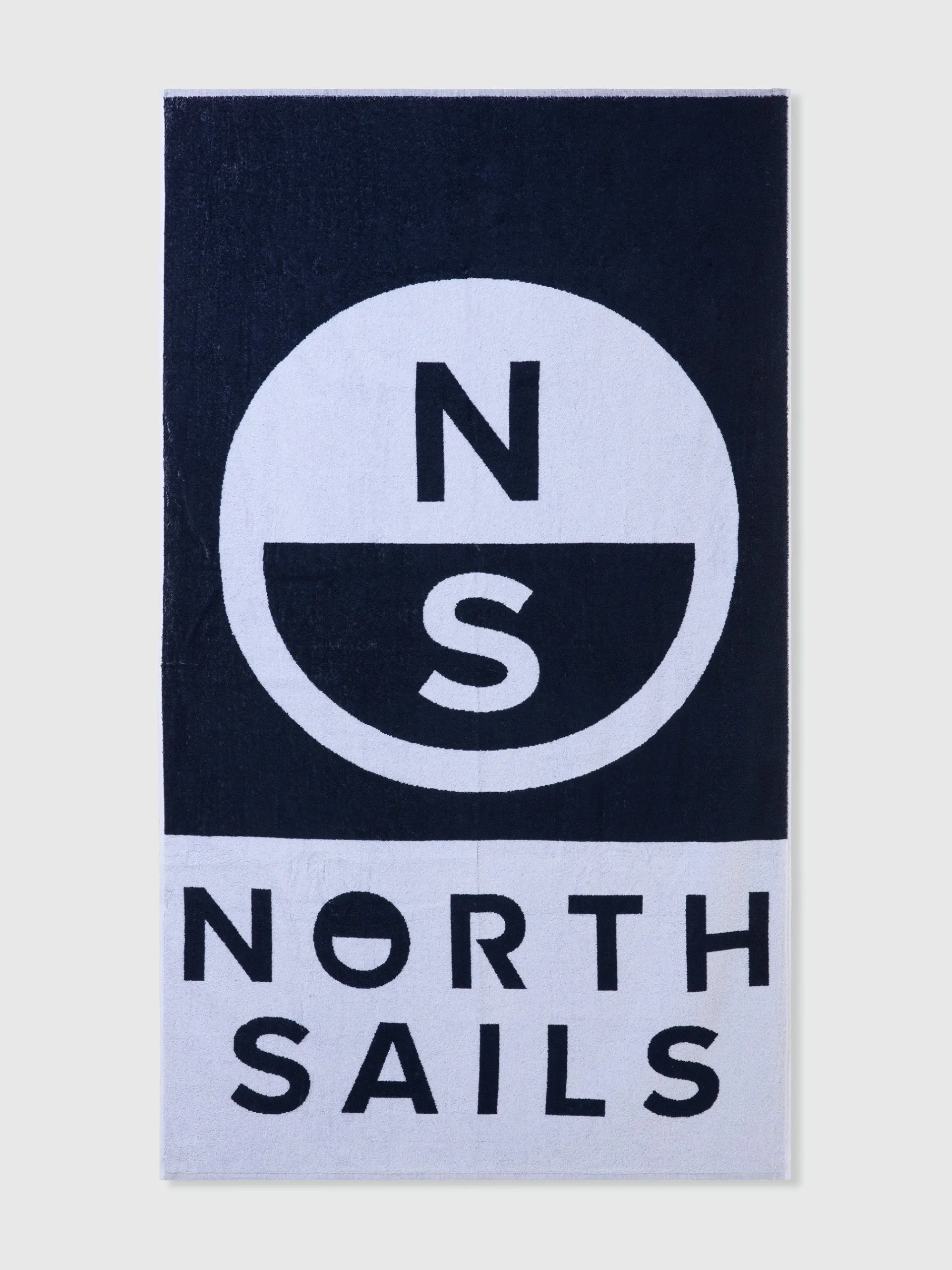 Questo telo mare fonde energia grafica e spirito North Sails. L'accessorio è realizzato in spugna di puro cotone organico che contiene le emissioni nocive e il consumo di acqua. Si caratterizza per il motivo color block e il maxi logo jacquard per un look iconico contemporaneo.