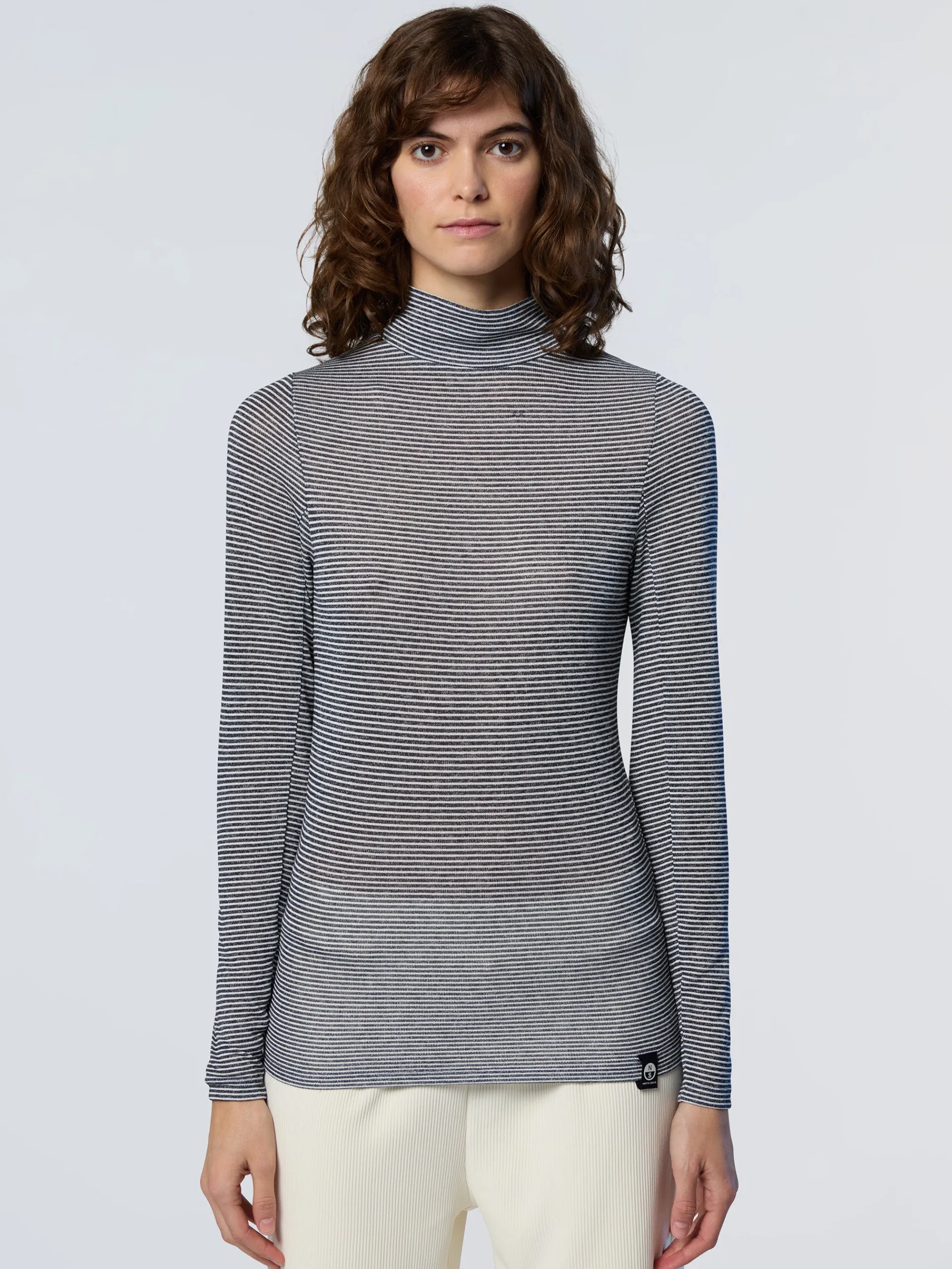 Il top a collo alto facile da abbinare e indossare in qualunque occasione. Il modello ha una silhouette femminile e slim ed è realizzato in jersey di viscosa morbido, leggero e traspirante. Impreziosito con la label North Sails applicata al fondo.