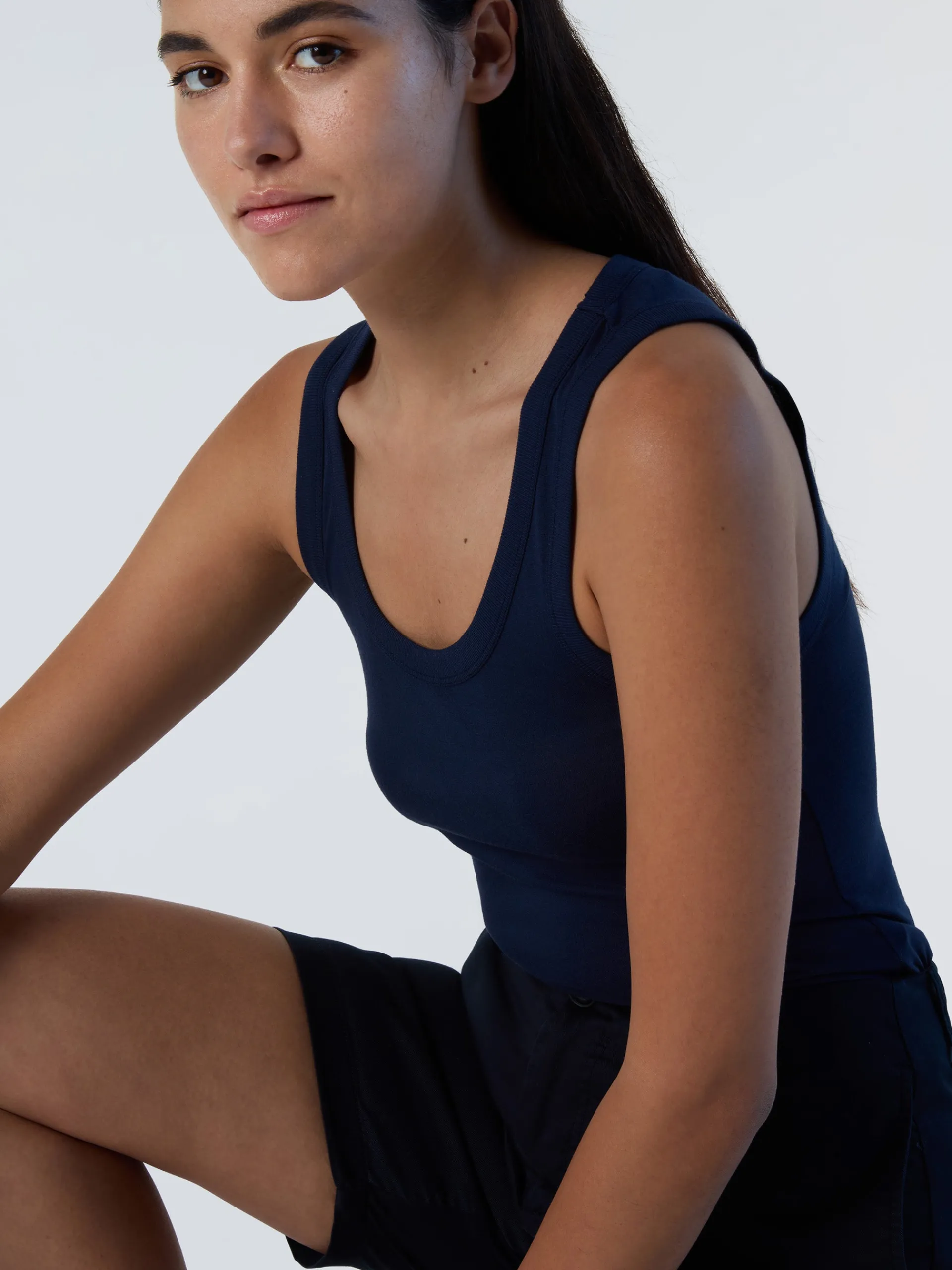 Il top facile da abbinare e indossare in qualunque occasione. Con la sua silhouette femminile e scivolata, il modello è realizzato in jersey di viscosa morbido, leggero e traspirante. I bordi a costine definiscono il design, mentre il logo gommato al fondo aggiunge un tocco distintivo North Sails.