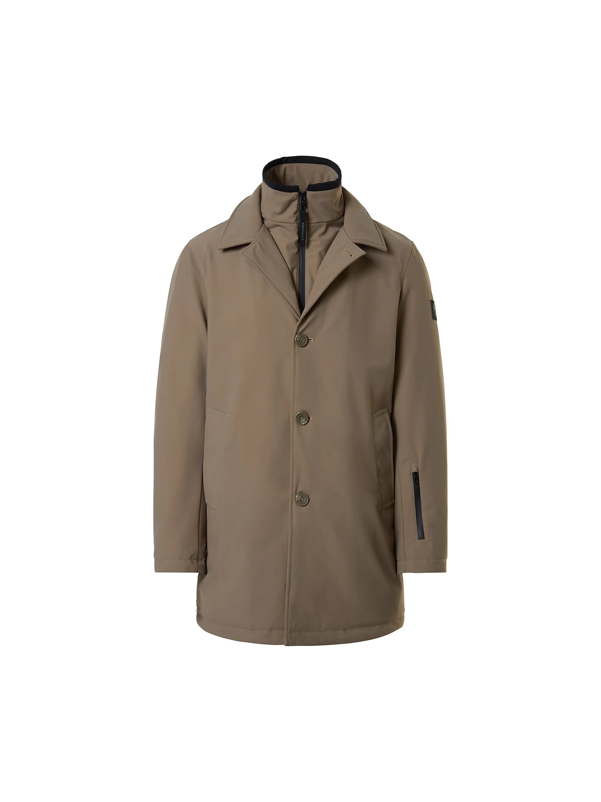 Attitudine elegante e ricerca funzionale si combinano nel trench da uomo North Tech. Il modello ha una costruzione 3 layer in tessuto riciclato traspirante e impermeabile con imbottitura in piuma sintetica riciclata e ultraleggera. La pettorina integrata garantisce una protezione extra, mentre la chiusura con bottoni completa il design con un tocco raffinato.